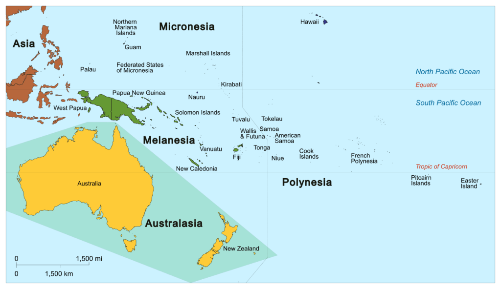 Je retiens : Papouasie-Nouvelle-Guinée, Iles Salomon, Vanuatu, Fidji, Nouvelle-Calédonie.