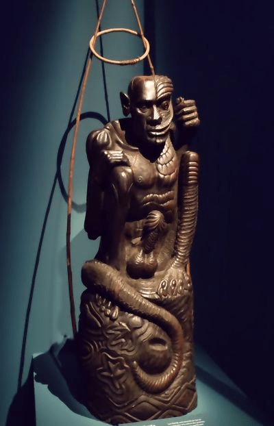 De nombreuses légendes sont racontées dans la culture kanak et cela fait bien sûr partie d’une tradition orale qui se rapporte au mythe fondateur, présent dans toute culture. En l’occurrence le Tea Kanaké que nous partageons ci-dessous, est un symbole fort de la culture kanak que l’on retrouve sur de nombreux totems et racontée sous de multiples versions.