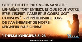 Essayons d’y voir plus clair et par simplicité, allons voir dans les quelques endroits de la Bible où l’esprit, l’âme et le corps sont tous les trois mentionnés. Par exemple :