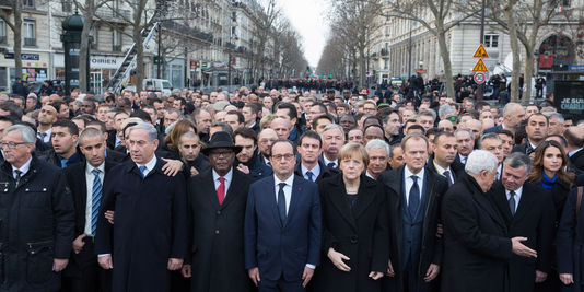 Le Monde titre : « Contre le terrorisme, la plus grande manifestation jamais recensée en France » et précise avec tous les dirigeants de la planète ! (source : https://www.lemonde.fr/societe/article/2015/01/11/la-france-dans-la-rue-pour-defendre-la-liberte_4553845_3224.html).