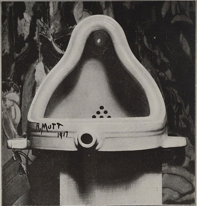L’art moderne a dépouillé l’oeuvre d’art de la figuration au bénéfice d’un formalisme esthétique résolu. Mais que reste-t-il de l’art si l’on rompt avec ce formalisme lui-même. Telle est la question que s’est posée Marcel Duchamp. Sa réponse, c’est qu’il reste le geste de l’artiste tel que le public le perçoit. D’où l’invention des ready-made (les « déjà fabriqués« ) dont le plus célèbre reste l’urinoir baptisé Fountain et signé du nom fictif de « R. Mutt »
