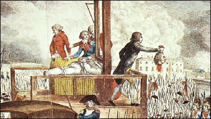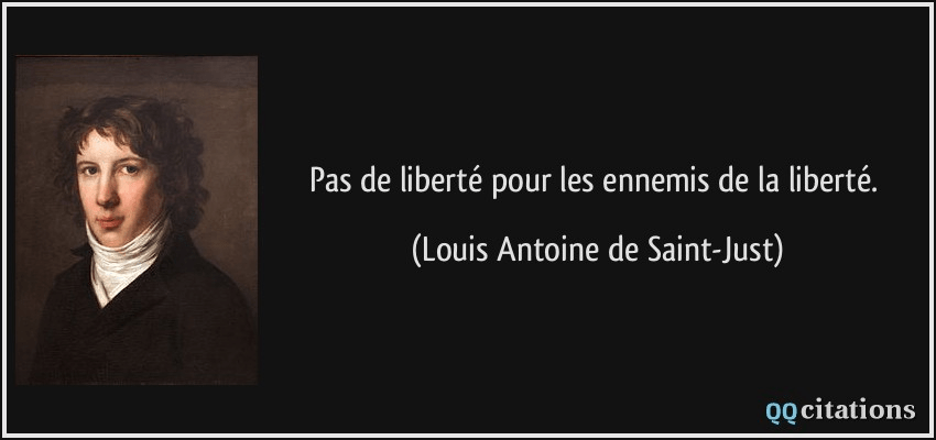 Dès le 14 juillet 1789, des têtes sont brandies sur des piques dans les rues de Paris et la violence révolutionnaire ira crescendo jusqu’à la politique de la Terreur menée par Robespierre au nom de « l’homme nouveau » à construire, de l’égalité et même de la liberté. C’est la célèbre phrase meurtrière, génocidaire aussi à sa façon (voir les Guerres de Vendée) de St-Just :