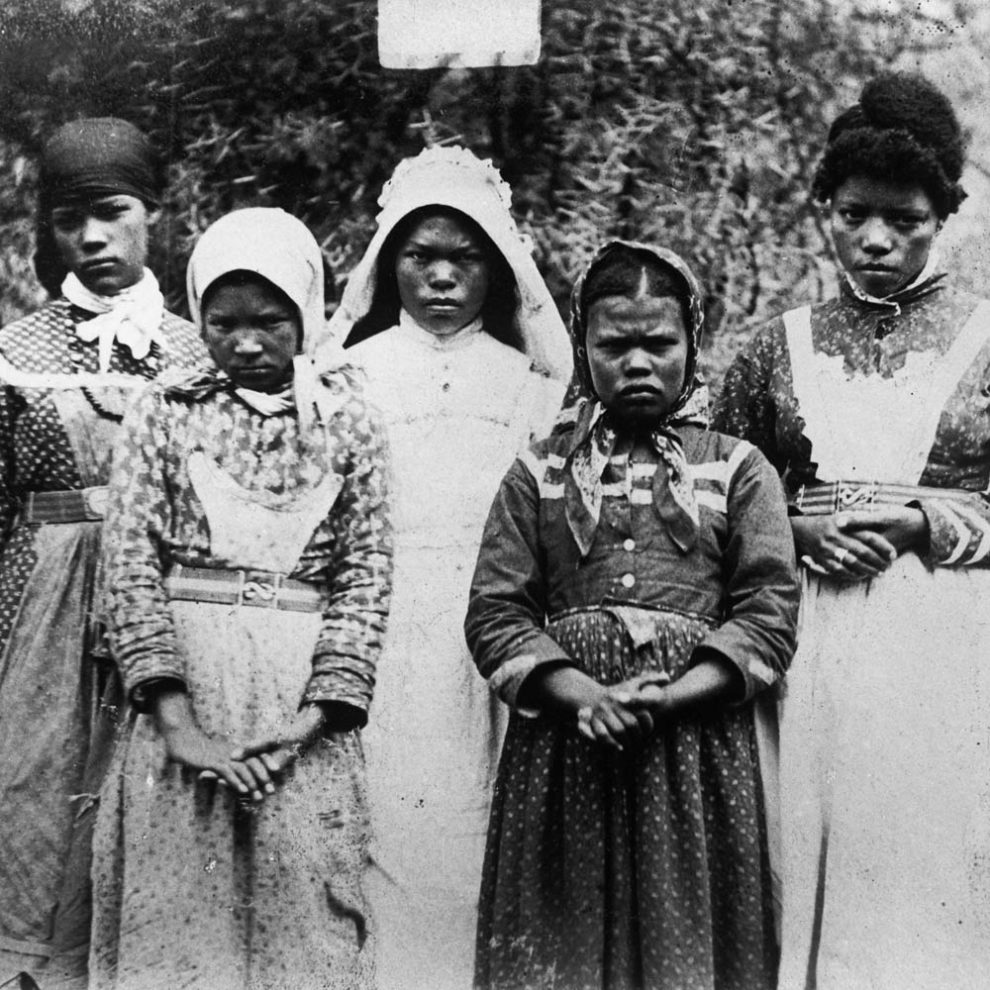 Prisonniers provenant des tribus Herero et Nama durant le conflit de 1904-1908 contre l’Allemagne. Photo : Der Spiegel, Août 1904.